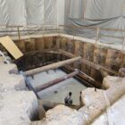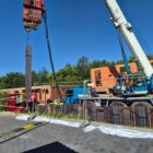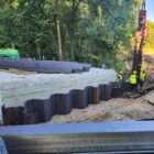 Mur oporowy z grodzic stalowych przy ul. Kozielskiej w Gliwicach.