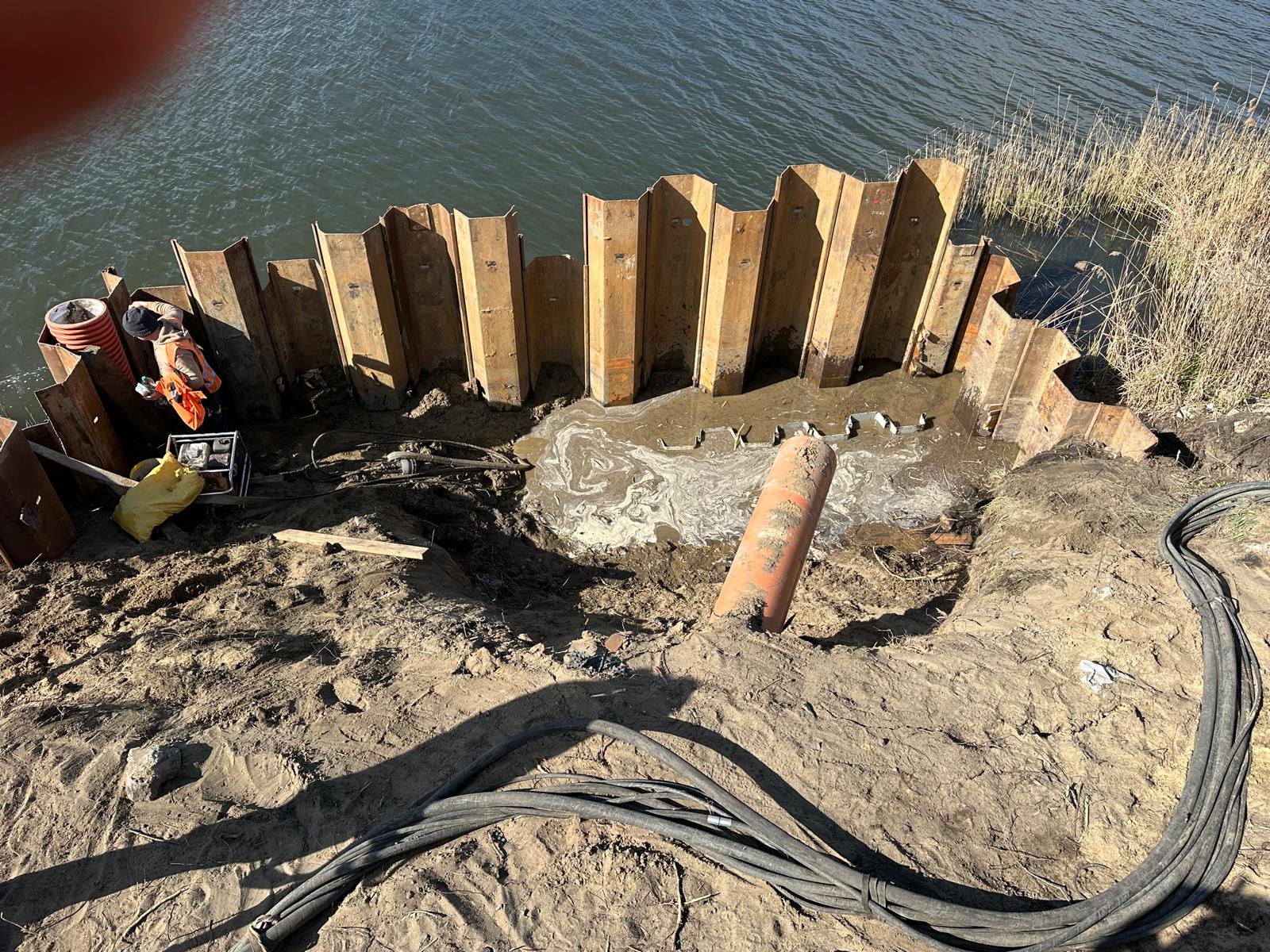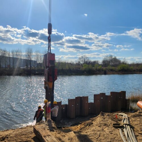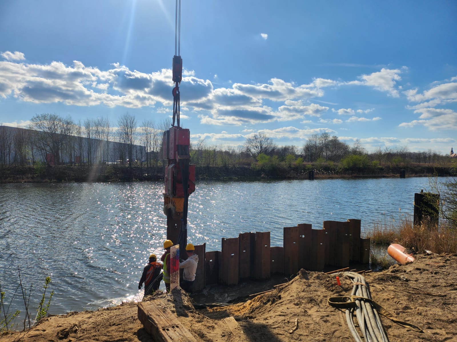 Pogrążanie grodzic stalowych metoda wibracyjną na wylotach kanalizacji deszczowej – Kanał Gliwicki