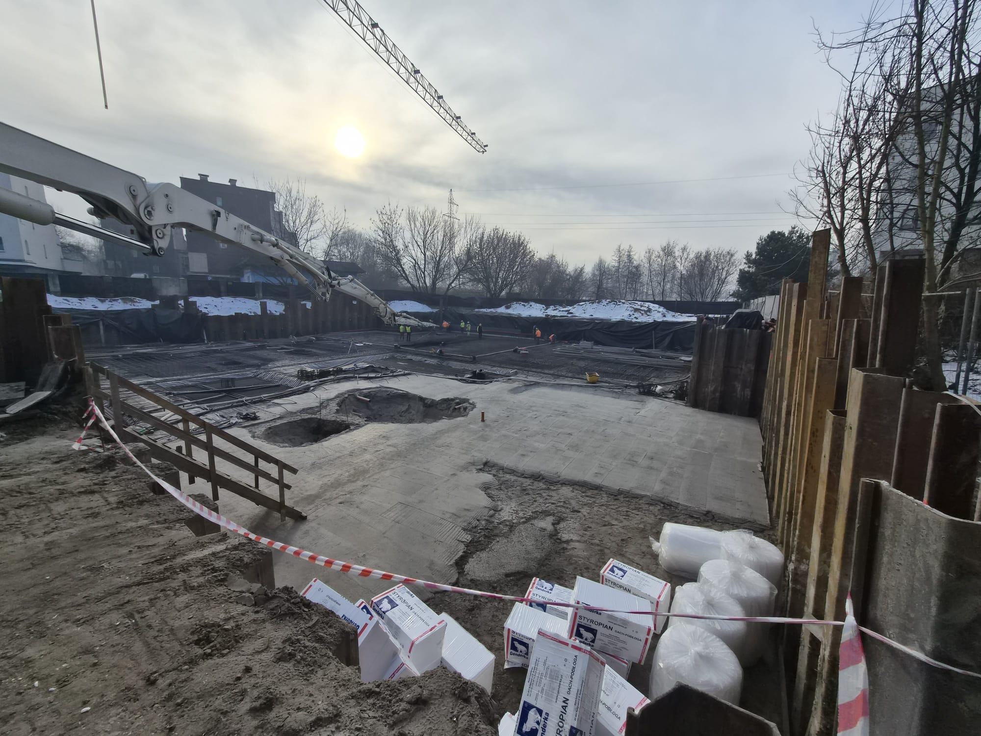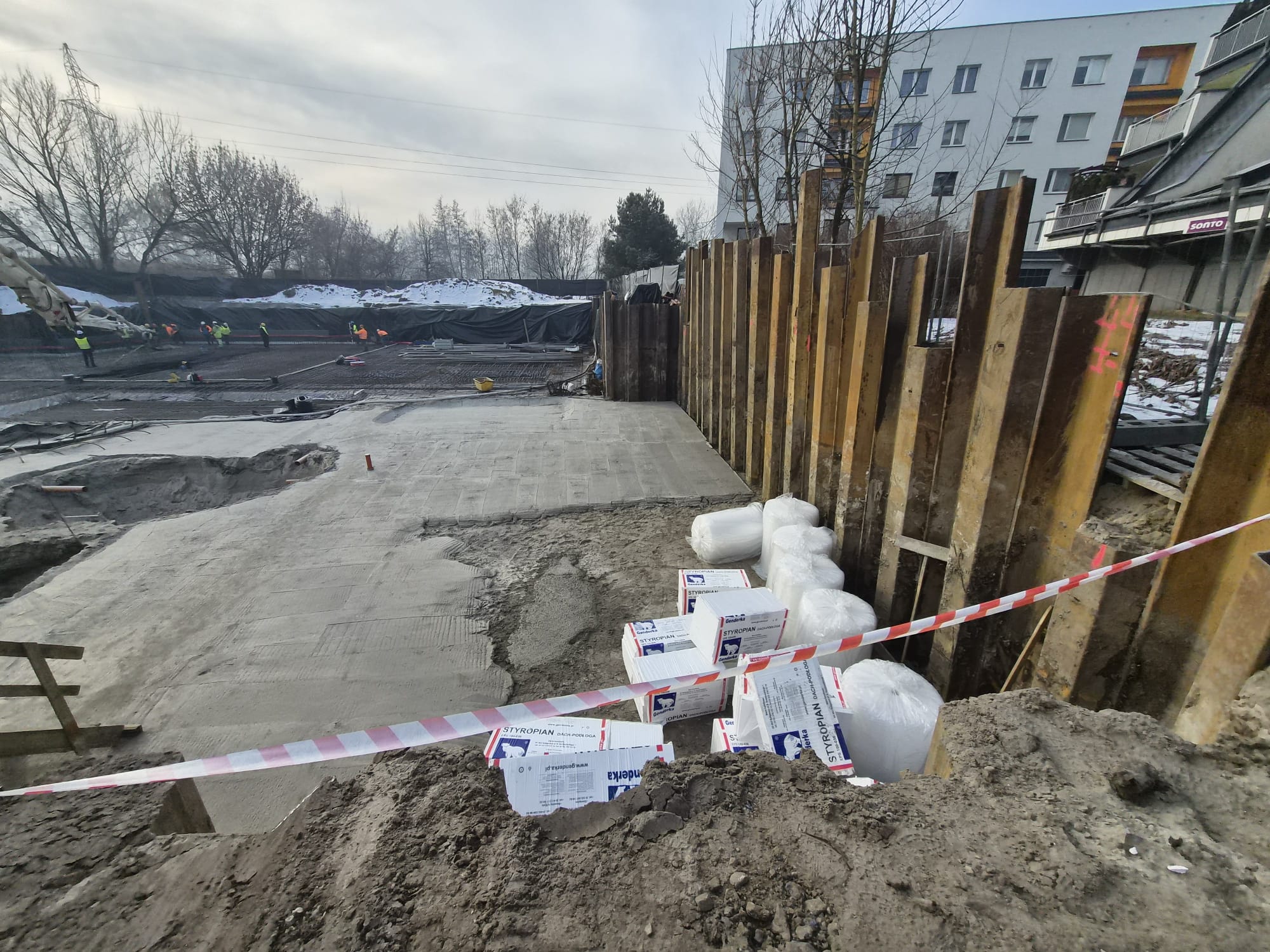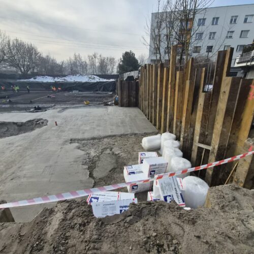 Realizacja tymczasowego zabezpieczenia wykopu z grodzic stalowych dla Budowy budynku wielorodzinnego z garażem podziemnym przy ul. Akacjowej w Sosnowcu.