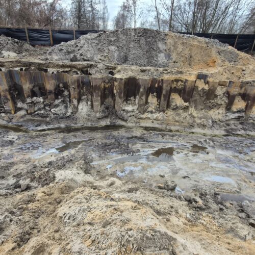 Realizacja tymczasowego zabezpieczenia wykopu z grodzic stalowych dla Budowy budynku wielorodzinnego z garażem podziemnym przy ul. Akacjowej w Sosnowcu.